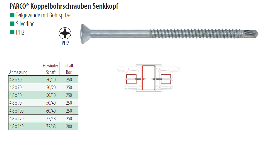 PARCO® Koppelbohrschrauben Senkkopf PH2, Typ SK Stahl verzinkt 4,8x100/60